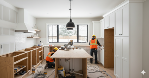 The Open-Concept Flow: We often remove non-load-bearing walls to connect the kitchen with the living area, creating a spacious environment perfect for hosting.